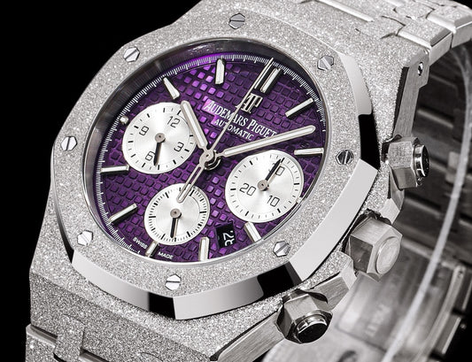 Chronograph - Frosted Silver -Purple White- 904L Steel - Automatic - 41mm