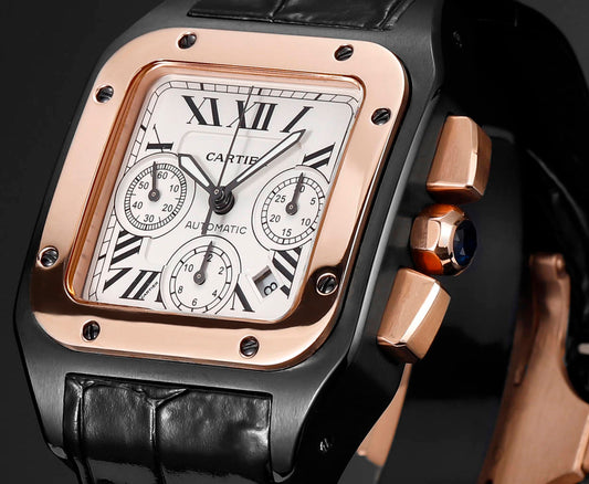 Chronograph -Rhinestone White 316L Steel - Black Leather - Automatic - 42mm