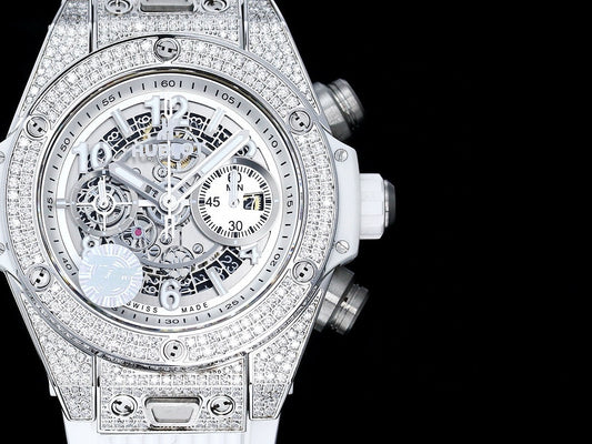 White rhinestone - Blue Rubber - Automatic - 45mm