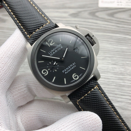 White - 904L Steel - Black Leather -Automatic - 44mm