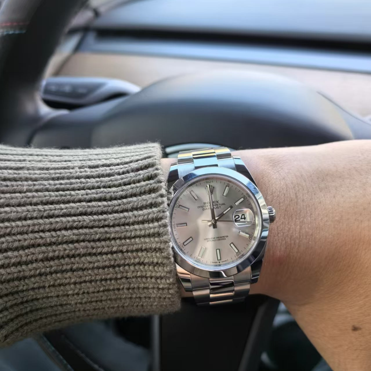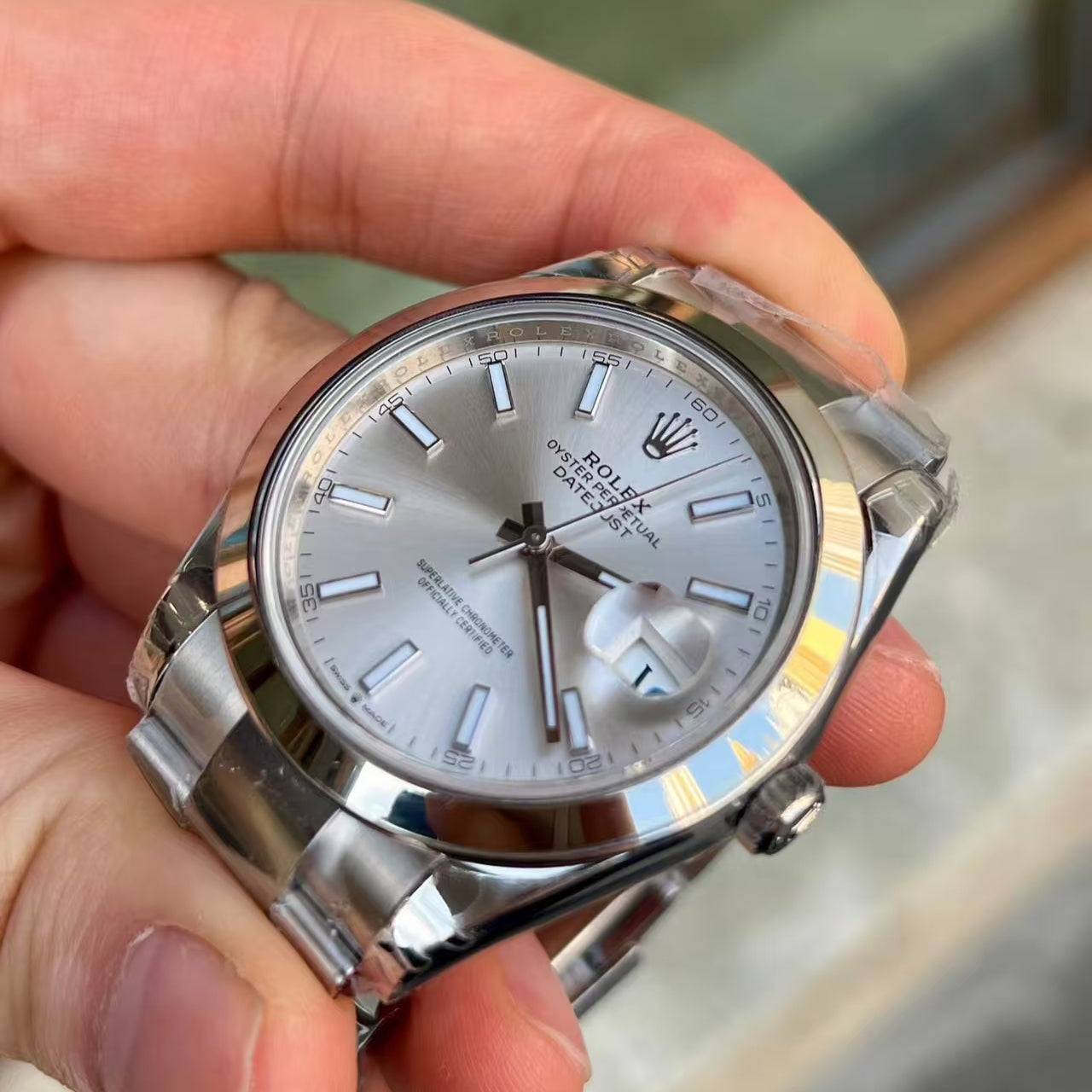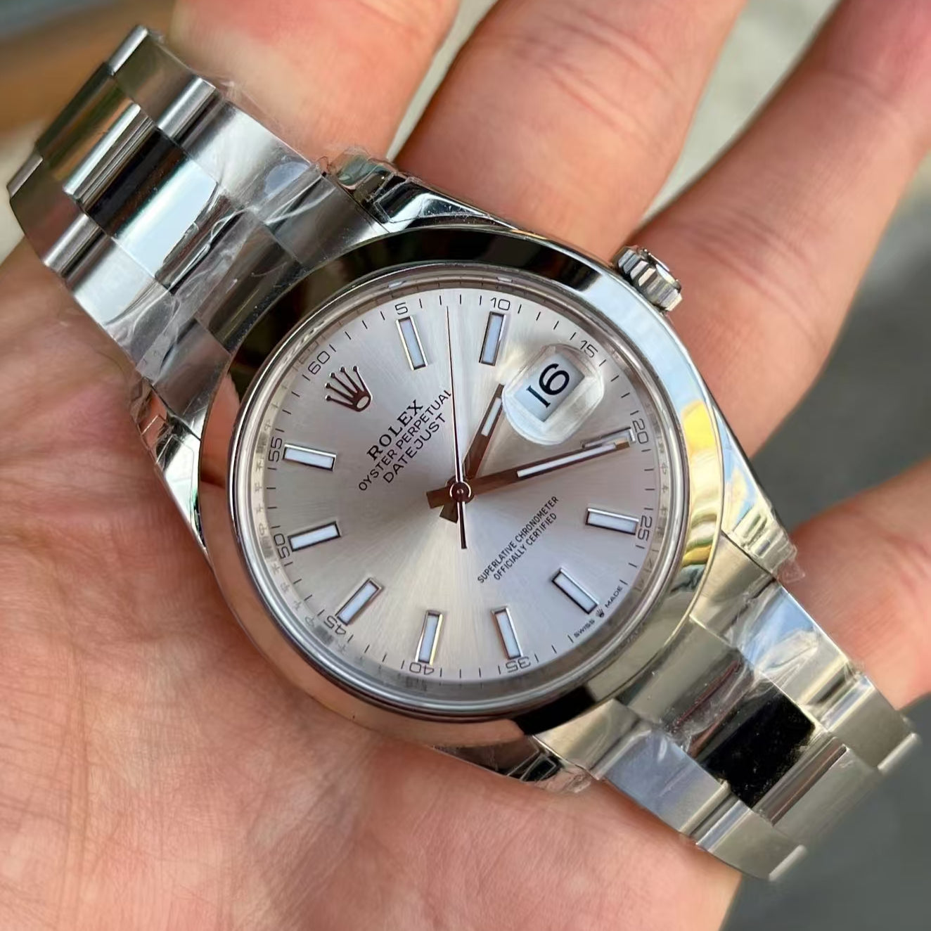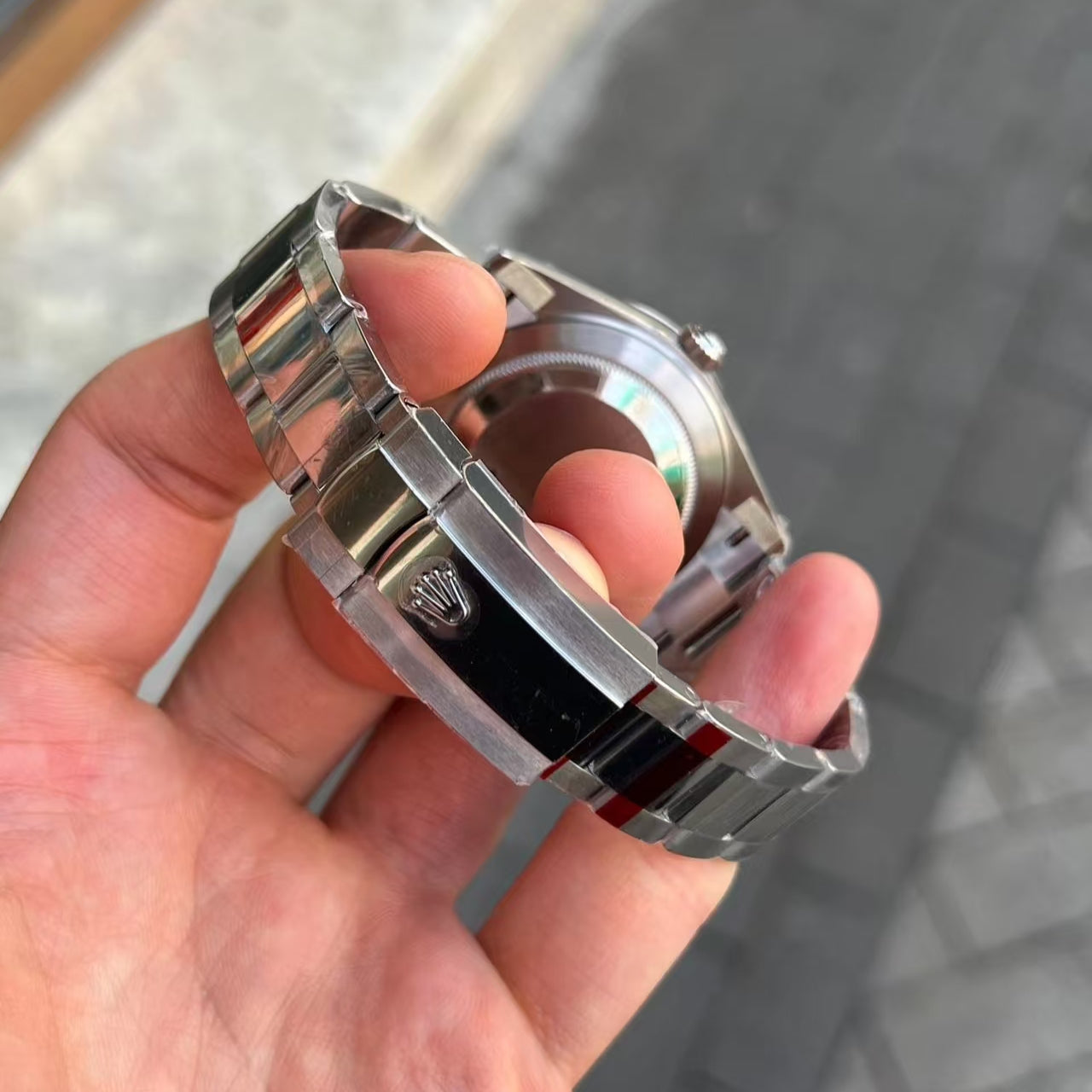The bracelet and internal parts are made of 904L steel, sapphire glass,
